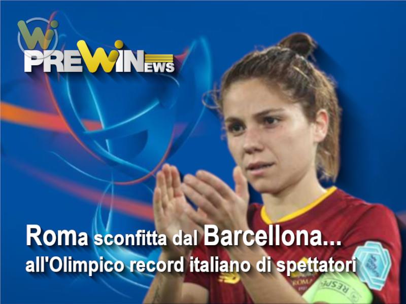 Nessuna conferma delle aspettative, Roma-Barcellona è stata una grande partita. Le giallorosse, è vero che hanno perso per 1-0, sì, ma non si sono di certo dimostrate inferiori rispetto alle avversarie, come in molti sostenevano alla vigilia. Sospinte dai 39.454 spettatori presenti all’Olimpico, che hanno reso i quarti di finale di “Women’s Champions League” la partita con più spettatori nella storia del calcio femminile italiano, sono state protagoniste di una grande prestazione. Record assoluto quindi, un nuovo segnale di un movimento, quello del calcio femminile, in costante crescita. Doveva essere un “evento festoso” e così è stato, almeno all’inizio del match, visto che le giallorosse erano molto emozionate e orgogliose di aver portato così tanta gente allo stadio.