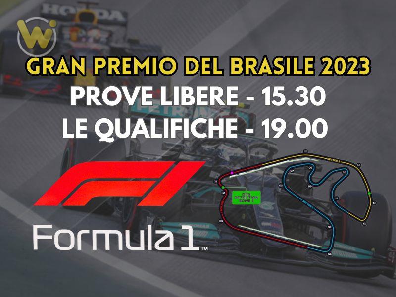 Dopo la vittoria di Verstappen, ormai già campione del mondo, in Messico, la Formula 1 torna con le Prove Libere 1 e LE QUALIFICHE del GP Brasile a Interlagos: cambia il programma del weekend che non sarà il classico di sempre, ma ci sarà nuovamente la Sprint Race. Orario d'inizio delle libere alle 15:30, alle 19:00 le qualifiche che definiranno la griglia di partenza della gara di domenica da 71 giri che assegna il bottino più alto di punti validi per le classifiche dei piloti e dei costruttori.