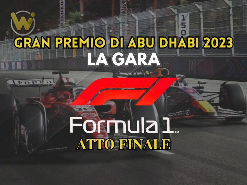 La gara del Gran Premio di Abu Dhabi chiude l'ultimo appuntamento della stagione di Formula 1. Si riparte dalla pole position conquistata da Max Verstappen dopo le qualifiche del sabato davanti a Charles Leclerc, mentre Carlos Sainz partirà lontano dai primi. Il via alla gara è fissato alle ore 14 di oggi 26 novembre.